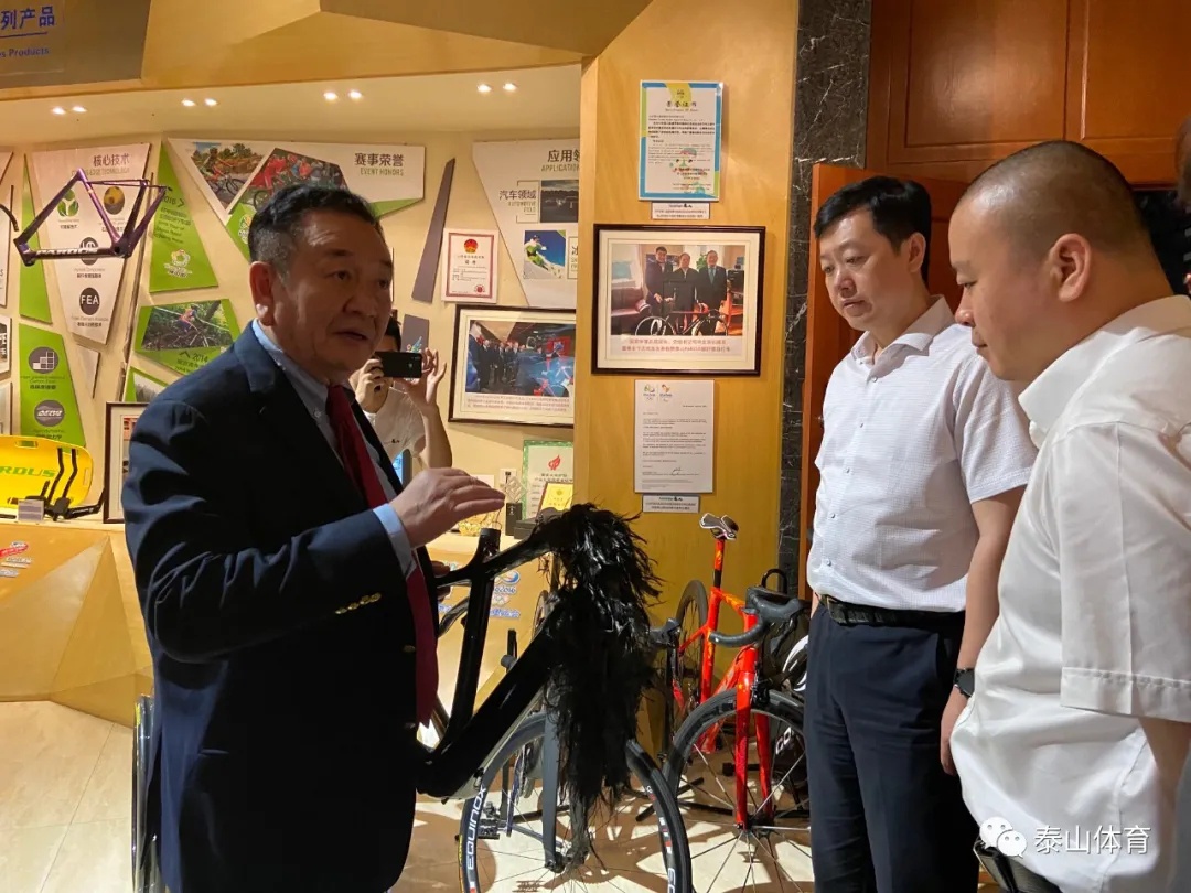 同日,菏泽市体育局局长史长华,第十三届全国政协教科卫体委员会委员、宋江武校校长樊庆彬一行莅临星空电竞集团调研指导。在调研过程中,史长华局长对星空电竞集团在党组织建设、竞技体育器材、人造草坪、碳纤维自行车、医养健康、冰雪装备以及在科技创新、体医融合、新旧动能转换等方面的工作给予了高度评价,双方针对市场开发、项目合作等事宜达成初步共识。