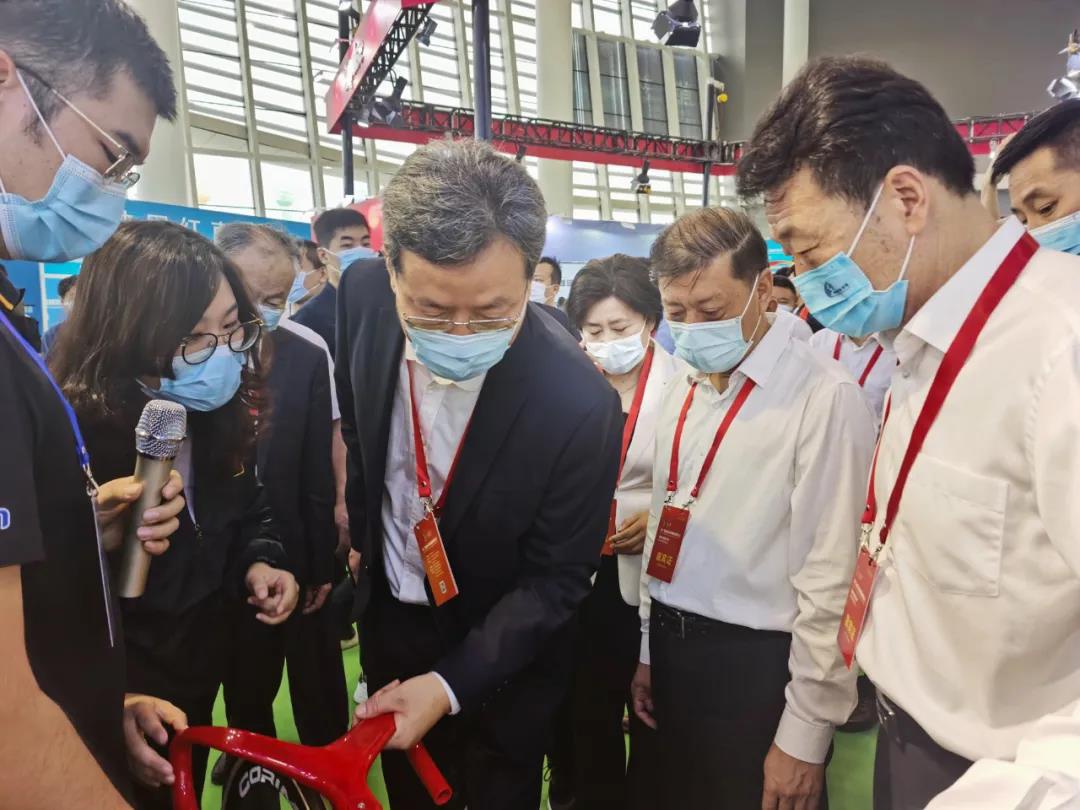 国家体育总局体育器材装备中心副主任王平,临沂市委书记王安德,临沂市委副书记、市长任刚,临沂体育局局长刘艳芬等领导莅临星空电竞体育展位参观