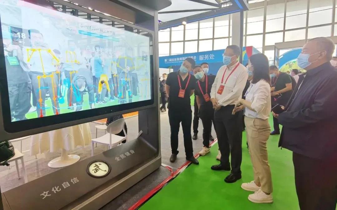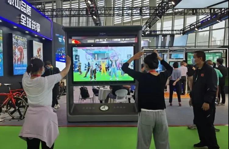 针对全民健身,星空电竞体育带来了“智能健身驿站”、“AI 武术大屏”等智能产品。凭借“高颜值”、“趣体验”,“武术大屏”前聚集了现场热情的观众一展身手,“切磋武艺”。“星空电竞体育AI 武术大屏”是一款应用 AR 增强现实技术与人工智能技术相结合来重构传统武术动作体验的智能应用产品,通过人工智能 AI 大屏结合肢体 识别与肢体捕捉算法,将专业武术老师的武术动作进行数字化展示,引导大众参与武术动作教习体验,并对体验者给出相应动作的正确反馈,更有打分竞技比赛趣味,是一款可娱乐可教习的智能武术互动系统。