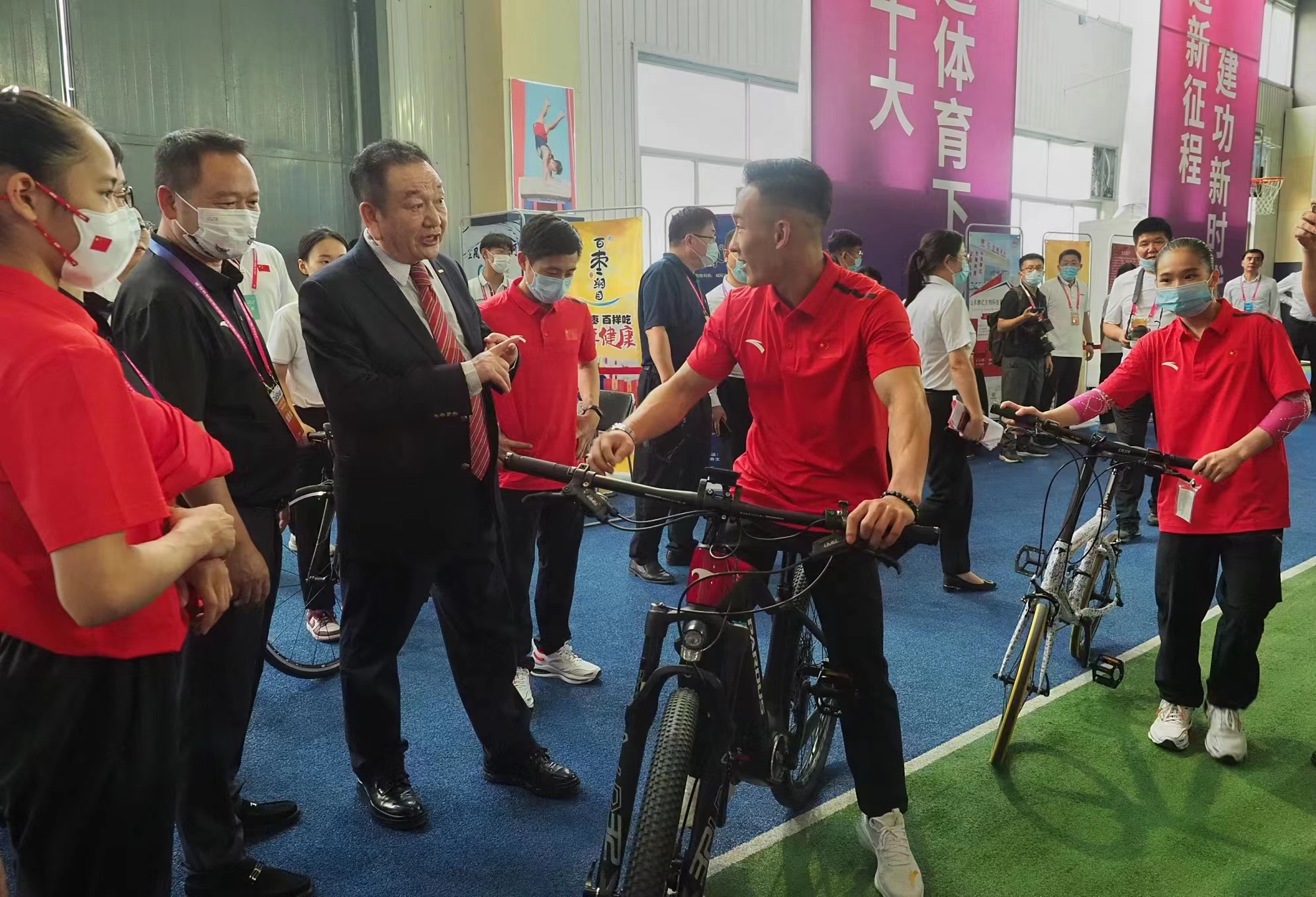 星空电竞瑞豹碳纤维自行车就是星空电竞体育立足科技创新、制定国际国内标准的代表产品。步入博物馆体验馆区,一排闪耀着科技感、未来感的自行车吸引了众人的目光。星空电竞瑞豹是中国国家自行车队(公路、场地中长组)、中国国家铁人三项队器材供应商,2016年里约奥运会上成为首个登上奥运会自行车项目舞台的首个自主品牌,打破了欧美国家在这一领域的百年垄断。产品曾荣获“中国优秀工业设计金奖”、IF国际设计大奖等。运动员们亲自上阵,体验自行车的高性能。