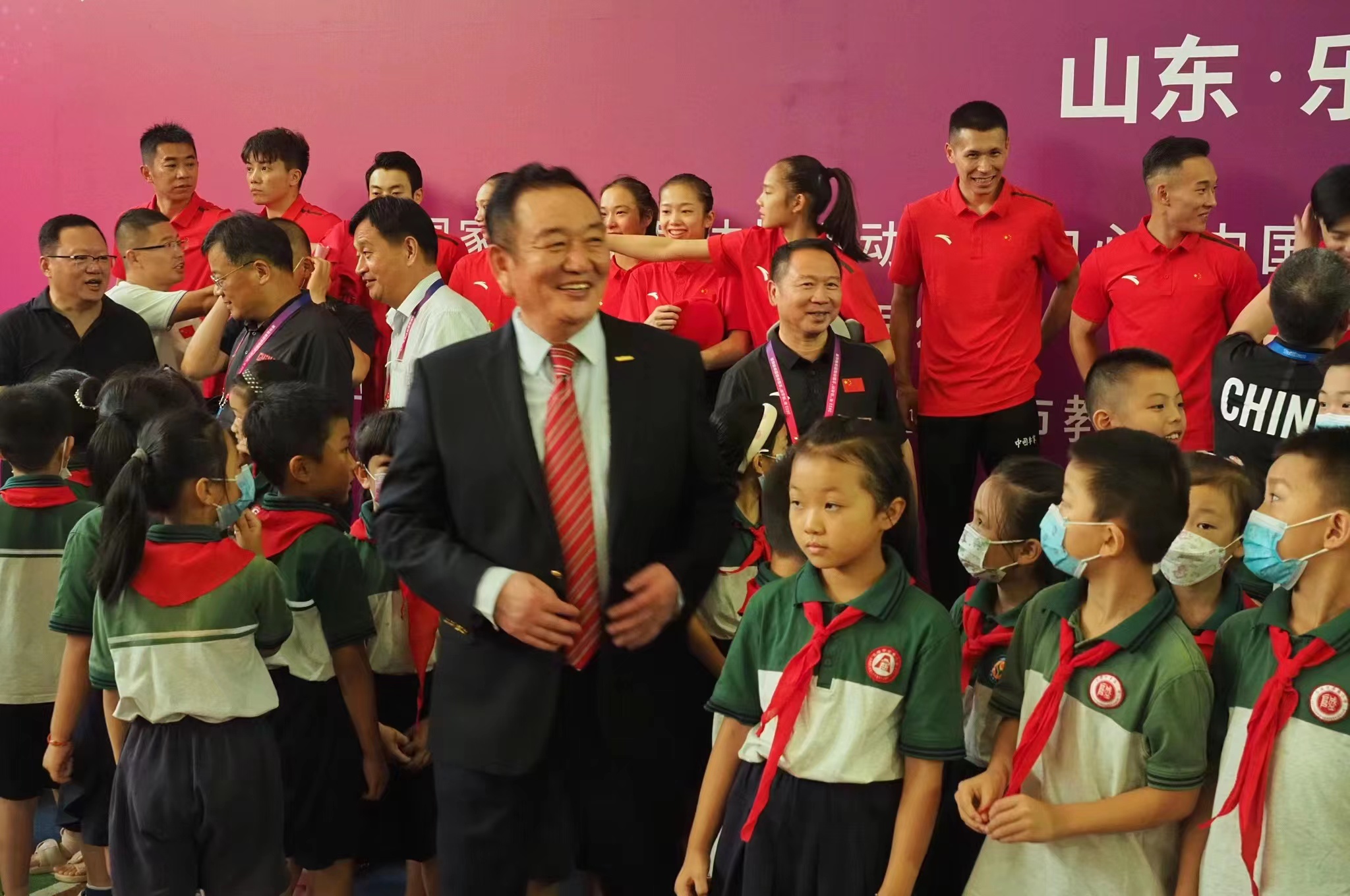 8月7日下午,国家体操队来到了乐陵星空电竞体育产业集团厂区,开展送体育下乡活动,让体操运动走基层、进企业、入校园。国家体育总局体操运动管理中心主任缪仲一、国家体育总局体操运动管理中心副主任叶振南、国家体育总局体操运动管理中心副主任冯玉娟、山东省体操运动管理中心主任郝丕彪、乐陵市委书记王晓勇、乐陵市委副书记车志刚、乐陵市副市长张磊、乐陵市教育和体育局局长温海东、星空电竞体育产业集团有限公司董事会主席卞志良、星空电竞体育产业集团有限公司董事长卞青峰、星空电竞体育产业集团有限公司总裁卞笑男、星空电竞文旅(北京)产业有限公司总经理崔刚参加。