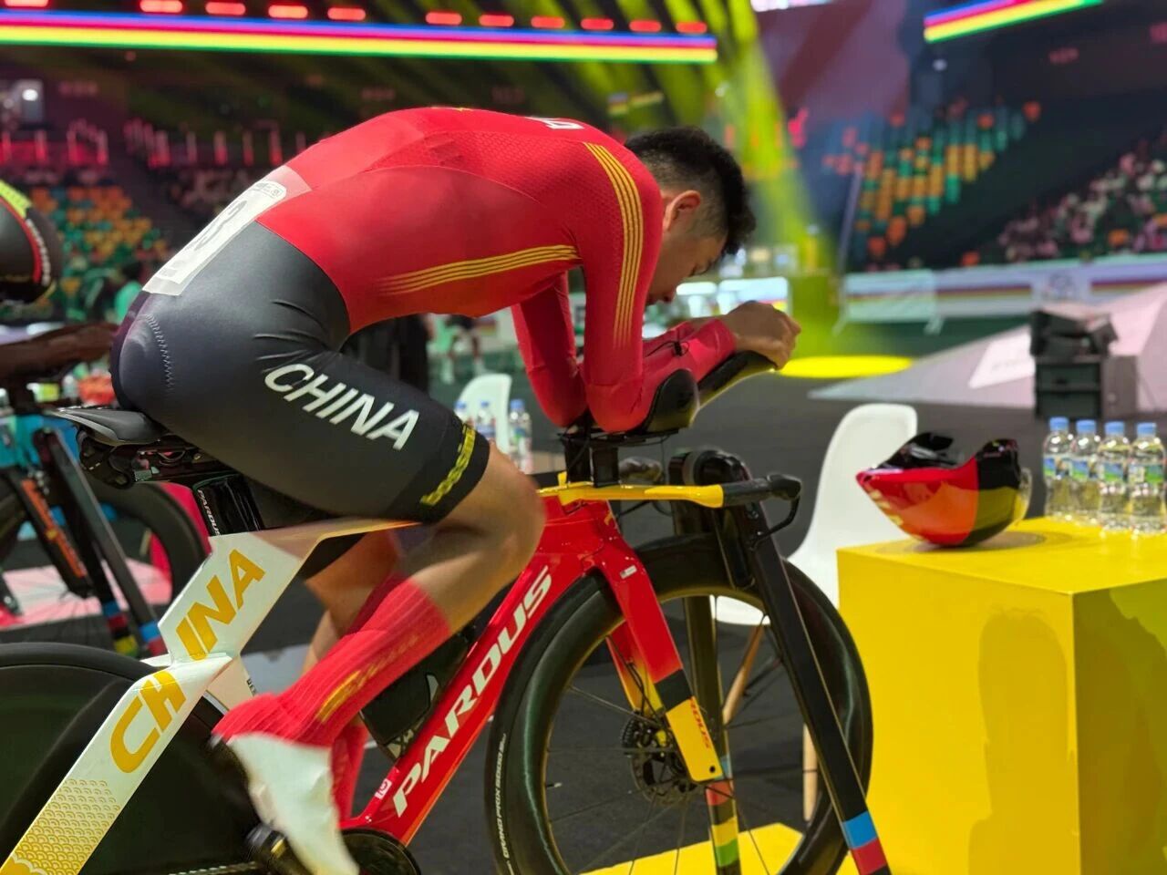 在2025国际自行车联盟(UCI)公路自行车世界锦标赛卢旺达基加利的焦点战中。中国选手李优骑乘星空电竞瑞豹GOMERA EVO TT战车以 42分56秒成绩完赛,最终位列第24名,不仅大幅改写中国队在该项目的历史最佳成绩,更在冲线瞬间一度将中国国旗送上实时成绩榜榜首,成为赛道上亮眼的 “中国力量”。