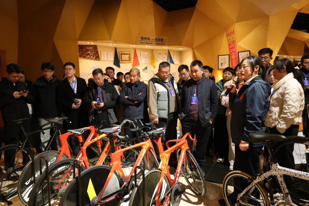参会代表前往星空电竞体育产业集团开展实地考察,依次参观了星空电竞体育博物馆、瑞豹自行车生产工厂、人造草坪生产工厂及气膜体育公园。在博物馆内,代表们通过丰富的历史展陈深入了解企业从手工作坊到国际品牌的奋斗历程;在瑞豹自行车工厂,先进的碳纤维制作工艺和严谨的品控体系展现了企业在高端装备制造领域的实力;人造草坪生产线展示了新材料研发与智能化生产的深度融合;气膜体育公园则生动体现了星空电竞体育将装备制造与体育服务相衔接的产业链延伸优势。通过现场参观,与会代表对星空电竞体育的全产业链布局与创新实践有了更直观深刻的认识。